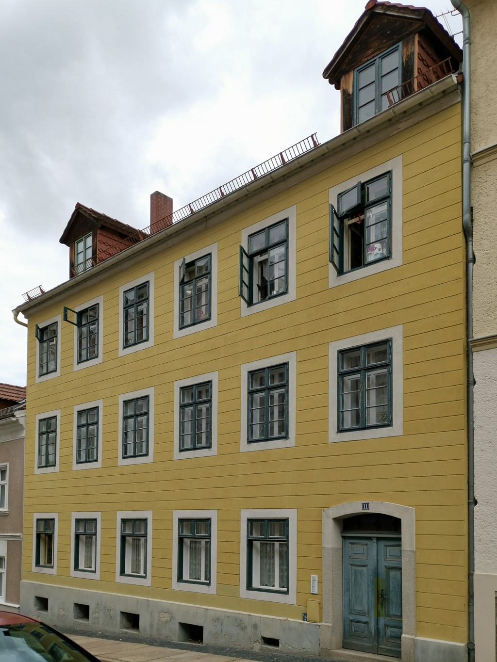 Die Haustür ist neu gestrichen, der Sockel überarbeitet und ebenfalls neu gestrichen. Nun fehlt noch ein Teil der äußeren historischen Doppelfenster. Sie werden derzeit von der Tischlerei Schön aufgearbeitet und dann wieder eingebaut.