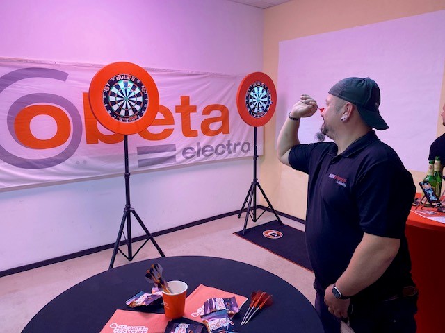 Gestern haben sich wieder ein paar unserer Mitarbeiter an einem sportlichen Vergleich beteiligt. Der Elektrogroßhandel Obeta hat mit seinen beiden Töchterunternehmen Eldis und Häusler zum Dartturnier eingeladen. Die Firma führt in dieser Sportart ein deutschlandweites Pokalturnier durch. Und an der ersten Runde – dem Filialausscheid – beteiligten sich gleich vier Mitarbeiter von KommWohnen. Die Abteilungen waren dabei bunt vertreten: vom Regiebetrieb über die Versorgungstechnik bis hin zur Finanzabteilung. Zwei Frauen aus der IT-Abteilung hatten sich auch kurz für die Teilnahme interessiert, dann aber leider doch abgesagt. So trat eine reine Männerriege zum Dartturnier an.