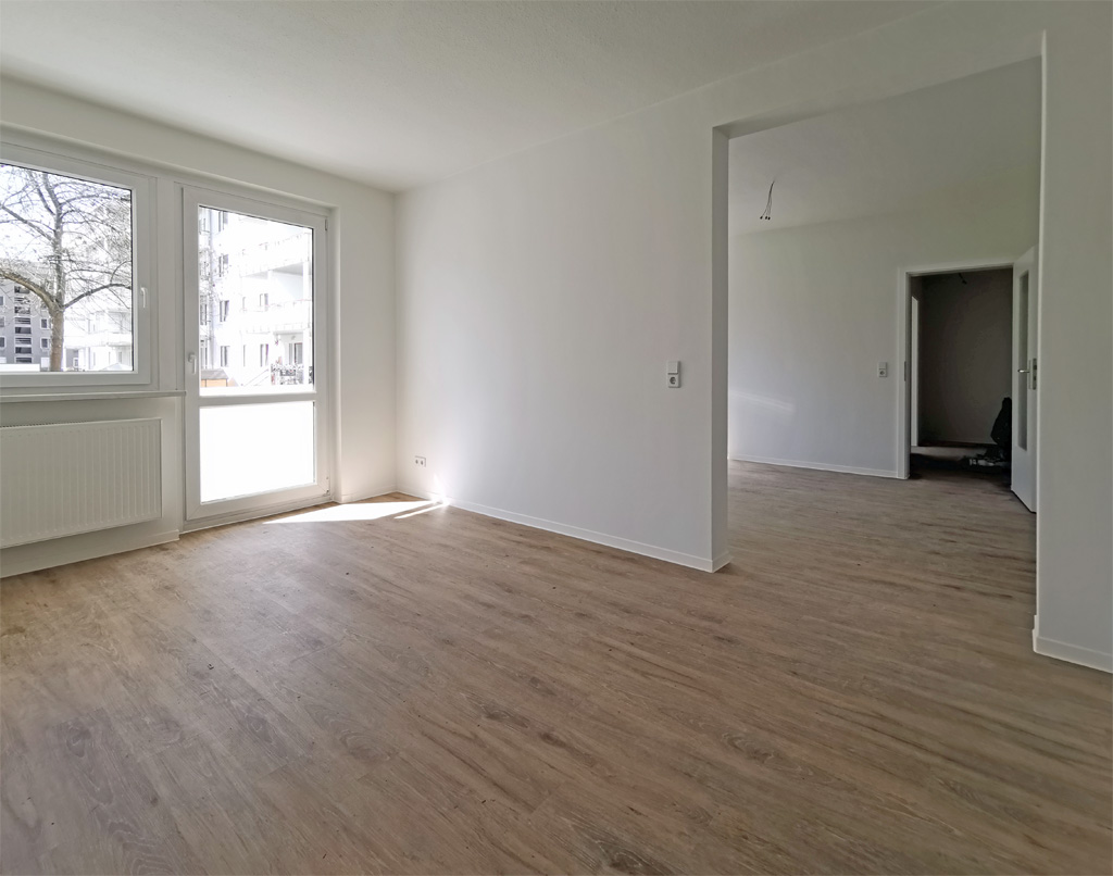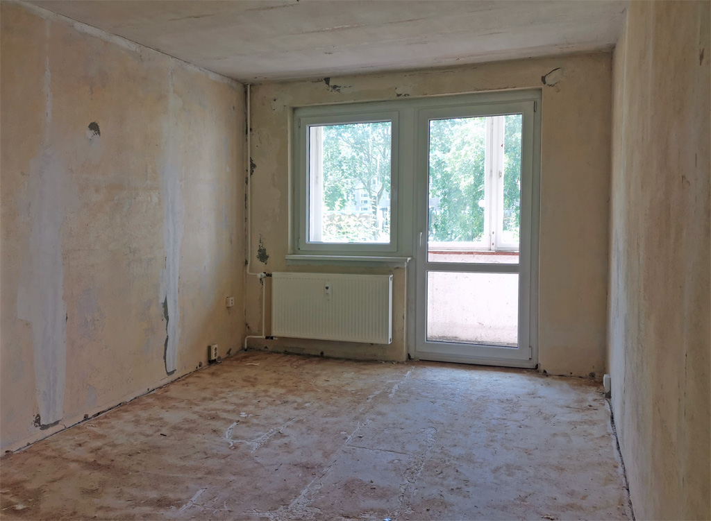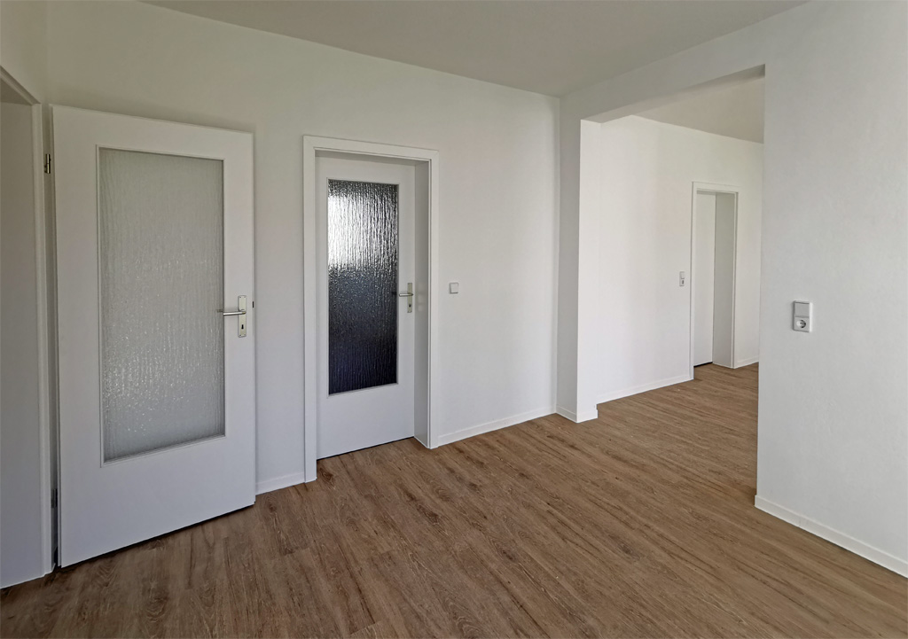 Wo es sich ergibt, legen wir in unseren Wohnblöcken immer wieder zwei Wohnungen zu einer zusammen. Oft betrifft das Einraumwohnungen, die mit der benachbarten Zwei- oder Dreiraumwohnung zu einer neuen, entsprechend großen Wohnung verbunden werden. In Rauschwalde sind nun sogar eine Vierraum- und eine Zweiraumwohnung miteinander verschmolzen. So entstand eine großzügige Sechsraum-Familienwohnung mit ca. 116 Quadratmetern, die ganz schnell neue Mieter gefunden hat. Drum haben wir das Prinzip im selben Haus gleich noch einmal umgesetzt. Und auch diese Wohnung hat bereits Mieter gefunden. Wegen der großen Nachfrage suchen wir weiterhin nach Möglichkeiten, wo aufgrund Leerstand eine Zusammenlegung machbar ist. Denn große Familienwohnungen mit vielen Zimmern sind nach wie vor Mangelware in Görlitz.